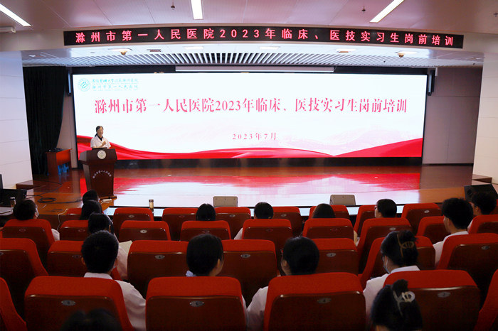 近日,附属滁州医院对2023年度来院实习的医学生开展为期4天的岗前培训。该院党委委员、副院长章华兵出席培训开班式并讲话。
