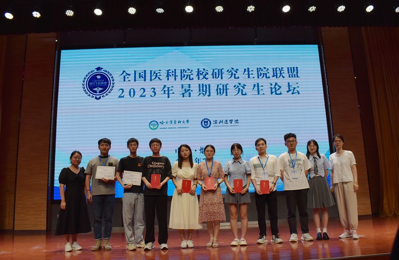 7月28日,由全国医科院校研究生院联盟主办,哈尔滨医科大学、滨州医学院共同承办的“2023年暑期研究生论坛”在滨州医学院烟台校区举行。我校研究生在本次论坛的学术论文汇报组和海报展示组共收获一二三等奖11项,展现了研究生严谨的科研素养、学术能力和创新性研究成果。其中,第二附属医院硕士生桂思语汇报的《黄酮类化合物的视网膜递送策略—基于纳米酶颗粒(NZs)的新型给药系统》获学术论文汇报组一等奖,药学院博士生庾聚涛展示的《 IGFBP7在急性肾损伤中的功能与分子机制研究》获海报展示组一等奖。