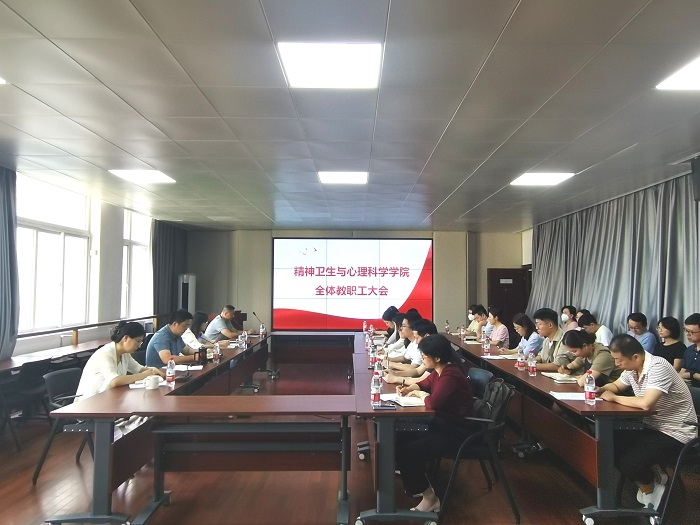 学院全体教职工参加会议。各学科系教研室逐一汇报了新学期工作部署与重点安排。(精神卫生与心理科学学院 艾秦雯)