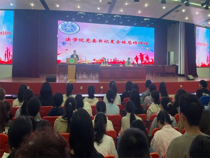 9月26日上午,法学院在南校区多功能厅举行2023级新生见面会。院党委书记夏会林、院长马青连出席见面会,院党委副书记刘燕主持会议。