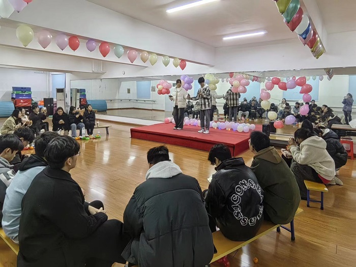 晚会节目引人入胜,高潮迭起,为在场的观众带来一场视听盛宴。小品《对王之王》展现了汉字魅力和对联的丰富内涵,弘扬了中华优秀传统文化;合唱曲目《一路向北》《晴天》带领同学们在音乐中穿梭,彰显了学子们蓬勃向上、活力十足的青春姿态。晚会还设置了踩气球、光盘拔河、“谁是卧底”等趣味十足的游戏环节,使现场气氛更加热烈。晚会展现了该院学生的多才多艺以及团结协作的精神风貌,加强了师生间联系,增强了学科系的凝聚力和向心力。