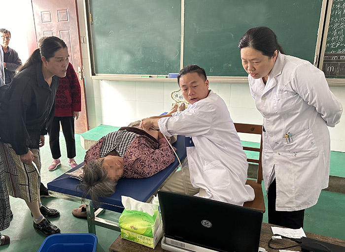 看诊之外,心脏影像科、心电功能科和超声诊断科等科室的专家还给村民们免费提供心电图、超声、血压、血糖等相关检测服务,一些需要转诊做心脏介入治疗的患者也得到了帮助。据统计,近400名村民在两日的义诊活动中接受了诊疗服务。