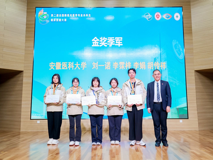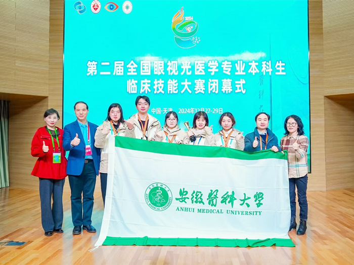 本次大赛由眼视光学国家级实验教学示范中心指导、天津医科大学承办,以“见眼见人,培育卓越人才;熟技通理,共筑健康中国”为主题,采用客观结构化临床技能考试(OSCE)的方式进行,设置四大模块、四个考站,赛题覆盖广泛,综合考察选手的基本理论、基础知识和基本技能、团队合作、人文关怀及临床思维能力等综合素质。大赛现场,来自全国19个院校眼视光医学专业的近百位本科生同场竞技,在门诊病史采集和眼科初始检查、外眼和眼前节检查、眼底检查、检影验光、主觉验光及老视检查、眼视光综合案例分析等项目进行比赛。我校第二临床医学院眼视光医学专业刘一诺、李霂梓、李娟、胡传祥四位同学组成KY.COM开云体育(中国)科技公司代表队参赛,团结协作、稳定发挥,充分展示了安医学子的专业素养和技能水平,得到组委会的肯定与赞赏,最终斩获金奖。刘一诺获个人单项奖,胡传祥获个人风采奖。