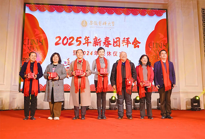 1月10日下午,学校举办2025年新春团拜会暨2024年荣休仪式,校党委书记王琦出席仪式并为荣休教师颁发纪念奖章,校长翁建平致辞。校领导班子成员吕雄文、徐朝阳、张智、李阳新、顾秀平出席仪式。仪式由校党委副书记、第一附属医院党委书记徐朝阳主持。