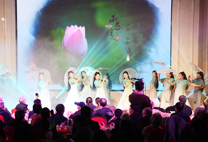 活动中,校老年大学带来了精心策划的文艺演出。男女二重唱《春风十万里》、舞蹈《雨巷佳人》、葫芦丝表演《映山红》、黄梅戏联唱、书法班作品展示等节目依次登场,展现了多样的艺术魅力与深厚的文化底蕴。女声大合唱《我们的生活多么美好》《我的祖国》将现场气氛推向高潮,大学生艺术教育中心带来的黄梅戏联唱赢得了观众的阵阵掌声。