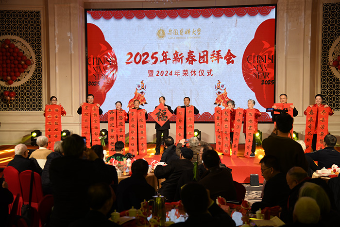 学校离休老干部、原校级领导干部、校本部及附属医院的退休老干部和2024年退休教职工代表,以及学校相关职能部门主要负责人等200余人参加本次团拜会。整场活动得到离退休老同志的一致好评。
